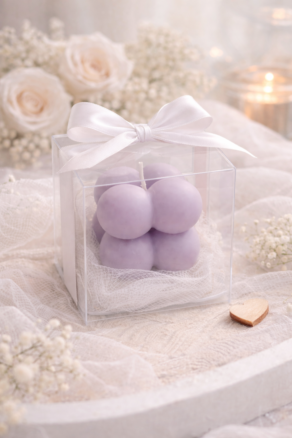 El diseño de burbujas de esta vela no solo llama la atención visualmente, sino también refleja un deseo de conexión emocional. Es perfecta para complementar cualquier decoración de mesa, añadiendo sofisticación y calidez a tu evento. Su fragancia suave y natural hace que la experiencia de tenerla sea aún más placentera, dejando una impresión profunda en quienes la reciban.